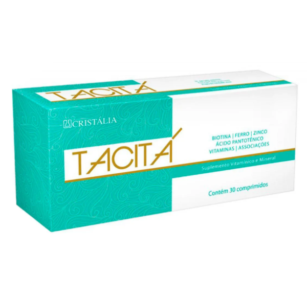 Tacitá é um suplemento vitamínico-mineral, desenvolvido especialmente para o fortalecimento e o crescimento natural de cabelos e unhas. Sua fórmula à base de vitaminas e minerais, que agem de dentro para fora, promovem força e resistência aos fios, combatendo a queda capilar. A biotina contida em sua formulação fortalece o do bulbo capilar, deixando o cabelo maleável e mais fácil de pentear. Além disso, auxilia na saúde de unhas fracas e quebradiças, tornando as saudáveis e mais firmes e fortes. Seu resultado traz unhas mais fortes e saudáveis, e cabelos resistentes e revitalizados.